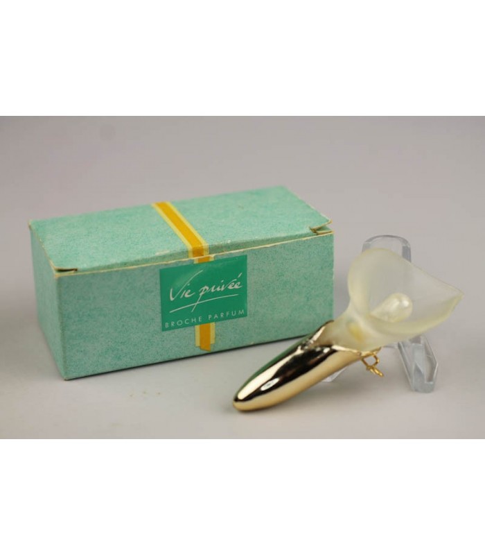 Broche doré support fleur arum blanc opq avec fl tubulaire cyl transp inséré